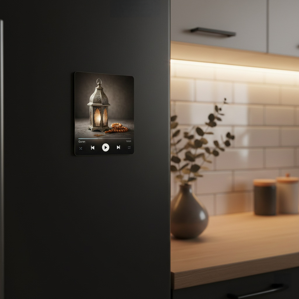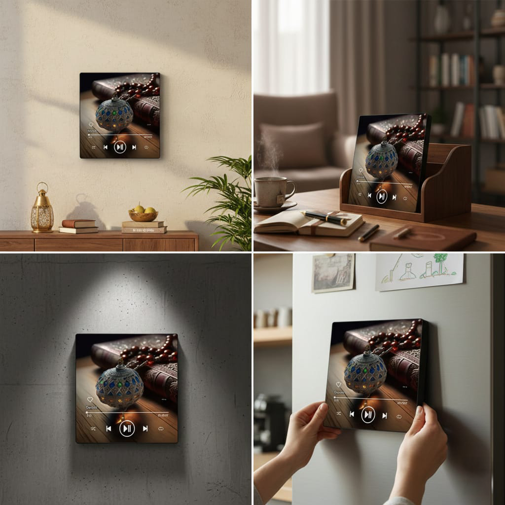 Apportez une touche de sérénité technologique à votre intérieur avec notre Magnet Décoratif Coran. Ce n’est pas seulement un accessoire, c’est une véritable pièce de design. Inspiré des interfaces d’écoute les plus populaires, ce Magnet Décoratif Coran capture l’essence de la spiritualité moderne. Il représente une mise en scène esthétique avec un chapelet (Misbaha) et une lanterne ornée, le tout présenté sous forme d’un lecteur audio en pleine lecture.